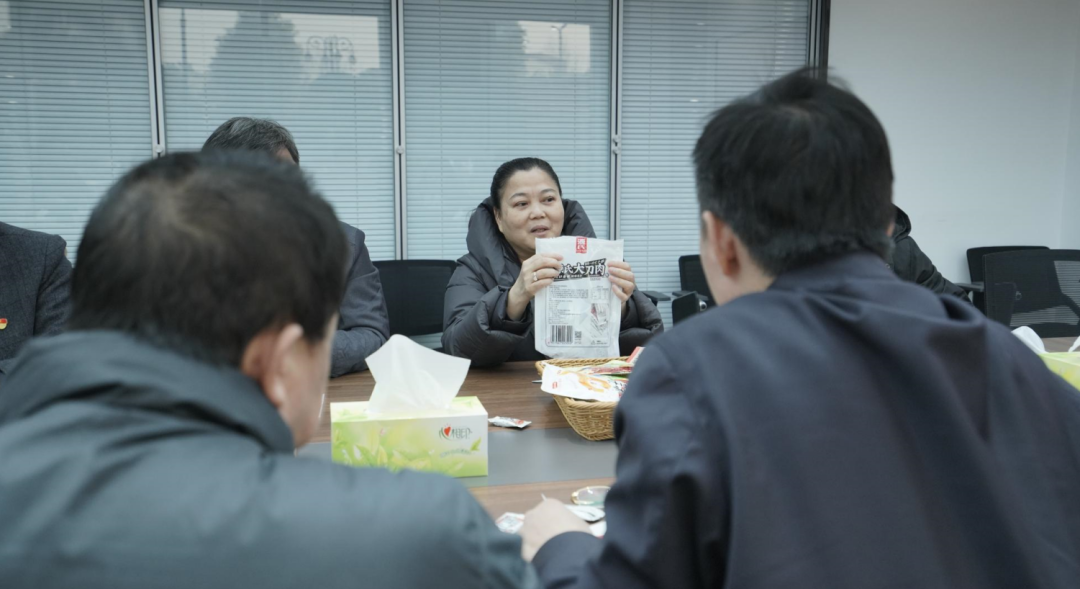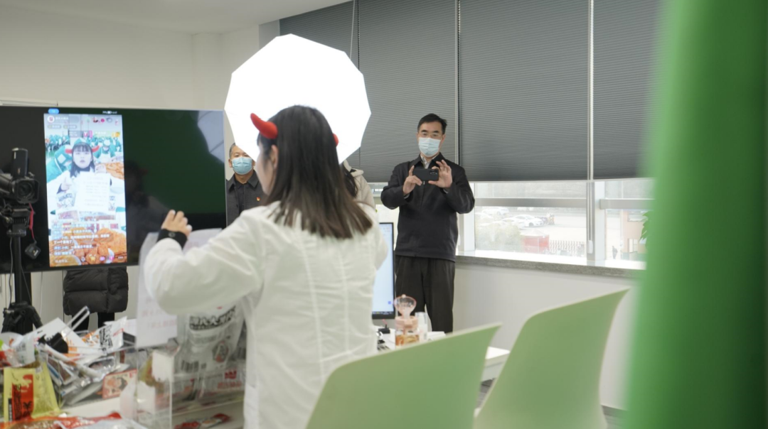 譚董帶領(lǐng)大家先在一樓展示廳觀看了源氏企業(yè)宣傳片,讓來賓們初步了解了公司規(guī)模以及生產(chǎn)流程,品牌中心焦夢圓陪同進(jìn)行實時講解,讓大家更快速地感受到源氏食品的主營產(chǎn)品、發(fā)展成果和企業(yè)文化。隨后,一行人來到三樓新媒體運營中心,并進(jìn)入直播間參觀,現(xiàn)場問詢和感受源氏食品抖音平臺直播情況,李文峰副會長表示源氏食品全平臺電商運營模式非常值得學(xué)習(xí)和借鑒。